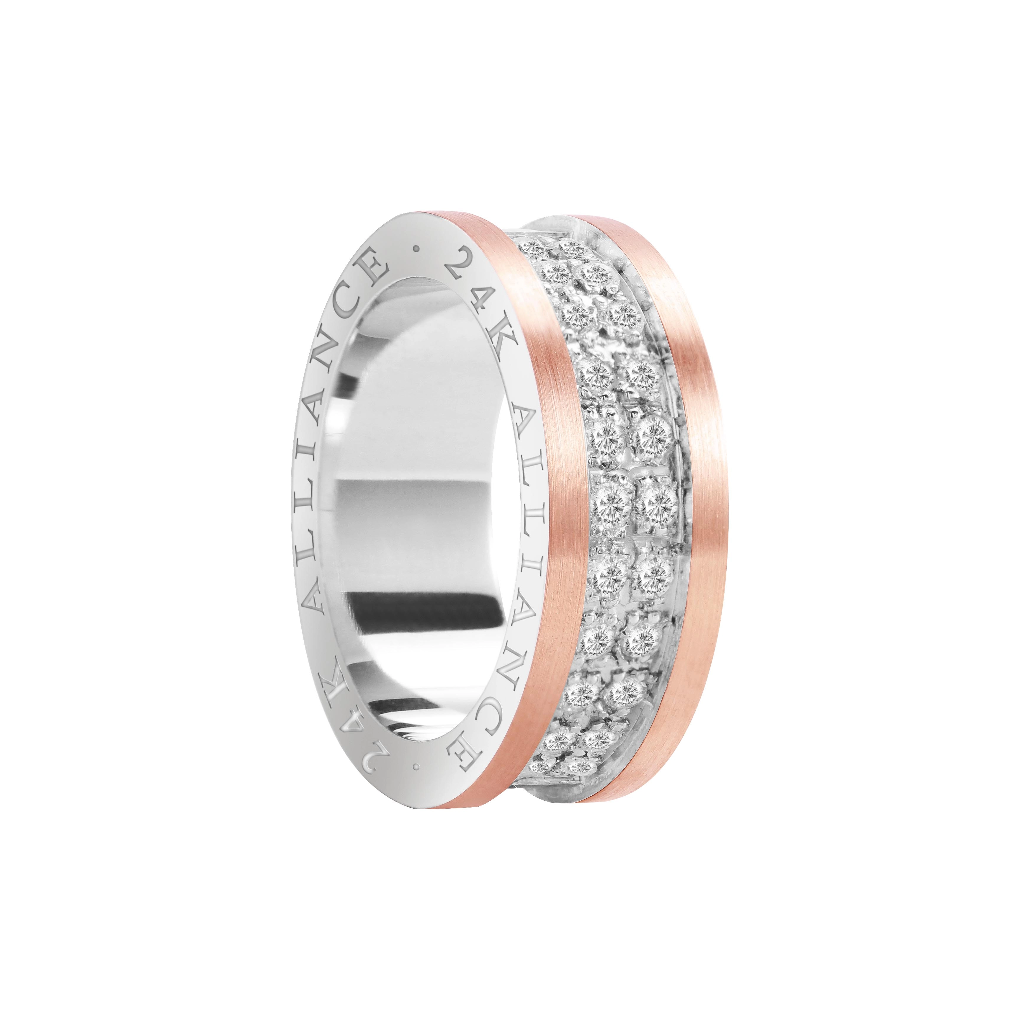 PRATA 950 - OURO 10K ROSE - 8,0MM - FOSCO - ANATÔMICO - 22 ZIRCÔNIAS